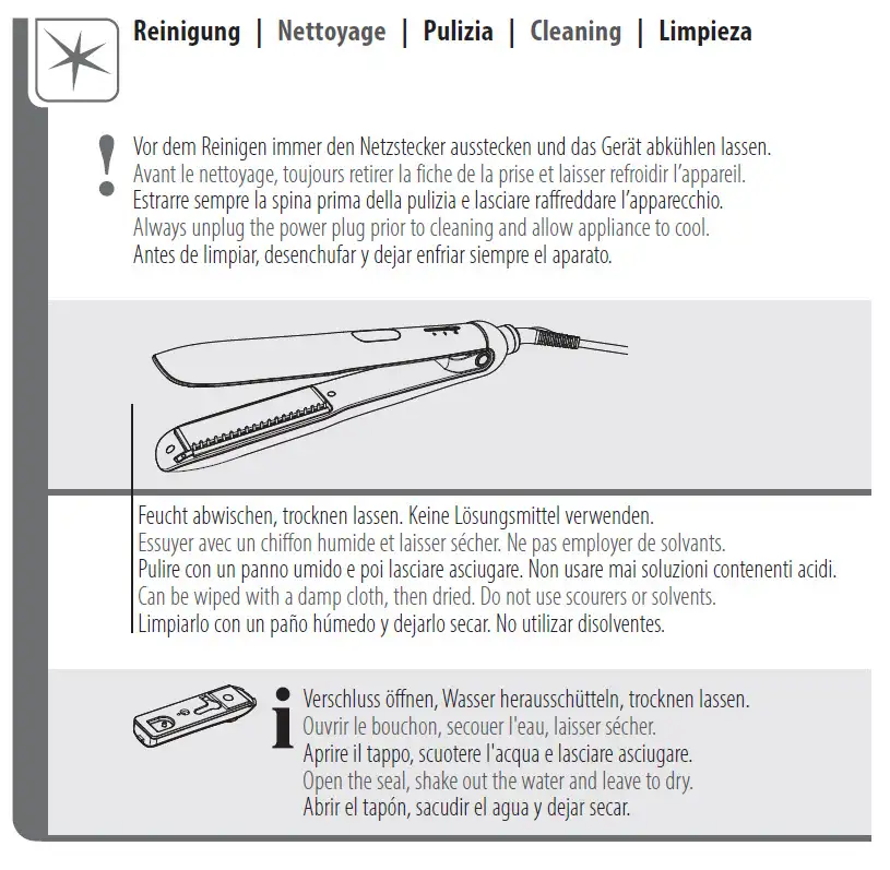 - Schonendes Styling mit Dampf und einstellbarer Temperatur von 150–230°C