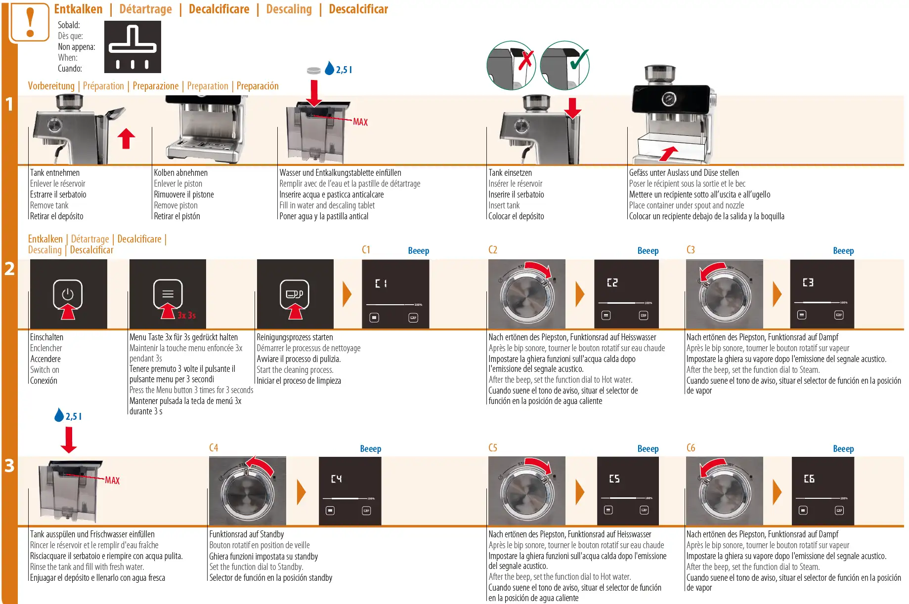 - Abnehmbarer 2.5-Liter-Wassertank und 260 g Bohnenbehälter