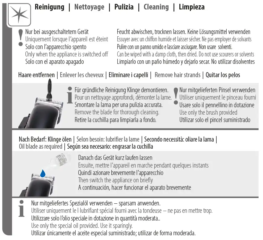 - Einfache Pflege dank Reinigungspinsel und Klingenöl