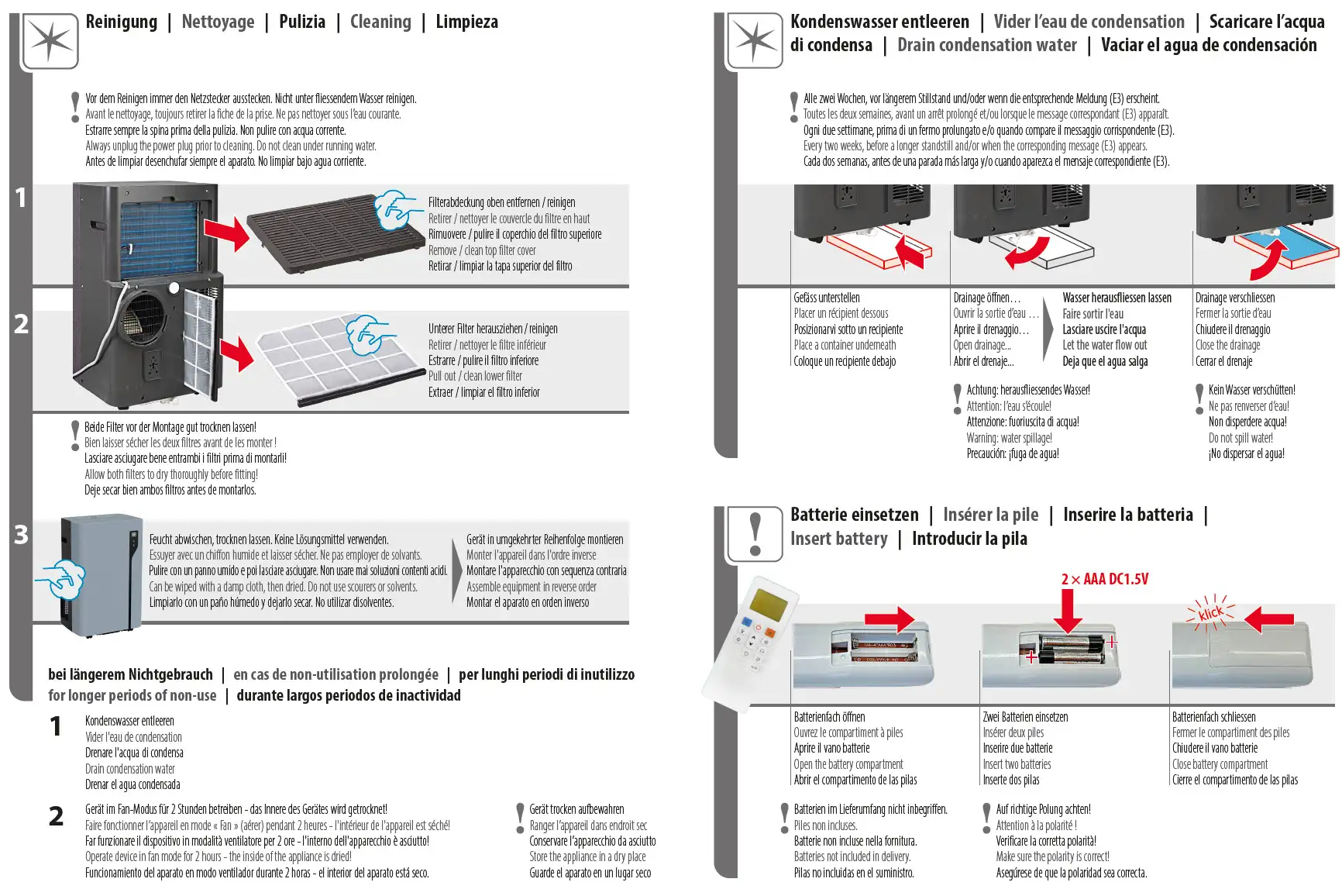 - Fernbedienung und Smartphone-Steuerung via WiFi für alle Modi, Kühlung, Trocknung & Timer
