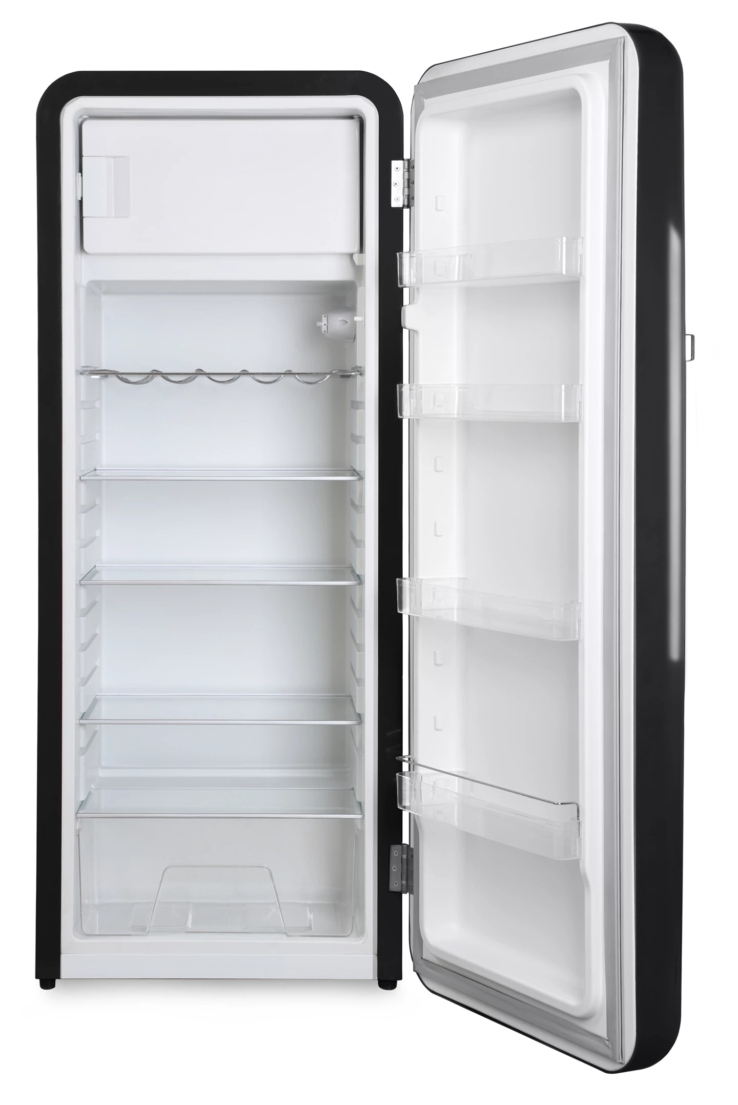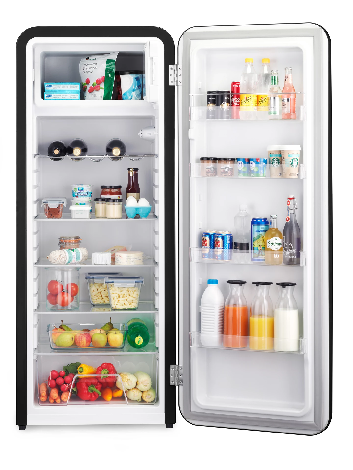 Grosser Kühlschrank mit 260l Fassungsvermögen und mit 21l Gefrierfach in coolem Retrodesign.