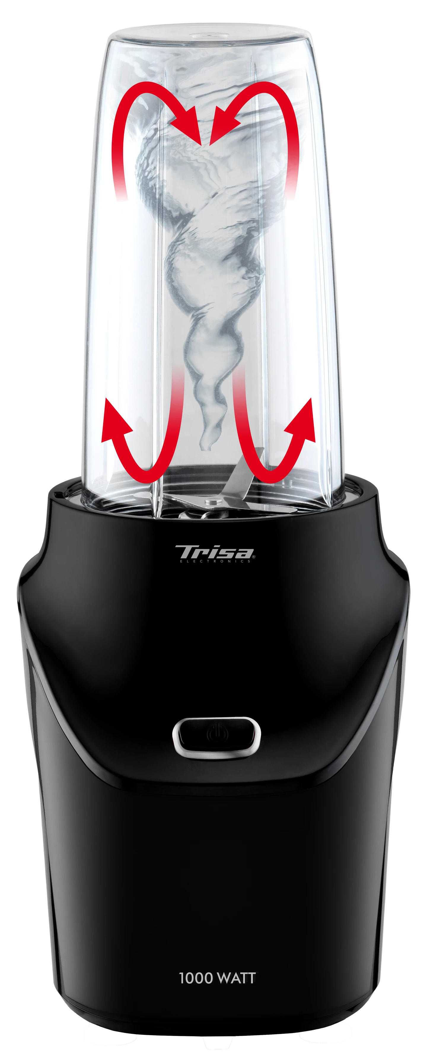 Der Trisa Klassiker Nutri Blender gibt es jetzt auch in coolem Mattschwarz. Der kraftvolle Nährstoff-Extraktor mit 25'000 Umdrehungen/Minute und innovativem 6-Klingenaufsatz mixt einfach alles: Obst, Gemüse, Nüsse und sogar Kerne, Stängel und Schalen. Mit dem 1000-Watt-Power-Motor werden versteckte Nährstoffe freigesetzt und können so optimal vom Körper aufgenommen werden. Sie erhalten zwei robuste Tritan-Becher und zwei Deckel. Zum Sport können Sie Ihr gemixtes High-Protein-Getränk in der 400 ml Flasche mit Trinköffnung mitnehmen. Den gesunden Smoothie für die ganze Familie können Sie im 1000 ml Becher zubereiten und aufbewahren. Auch Pestos, Babyfood und sogar Crusehd Ice lässt sich mit diesem Mixer problemlos zubereiten. Die einfache Handhabung ist ein weiterer Pluspunkt: Becher füllen, aufsetzen und los geht’s.