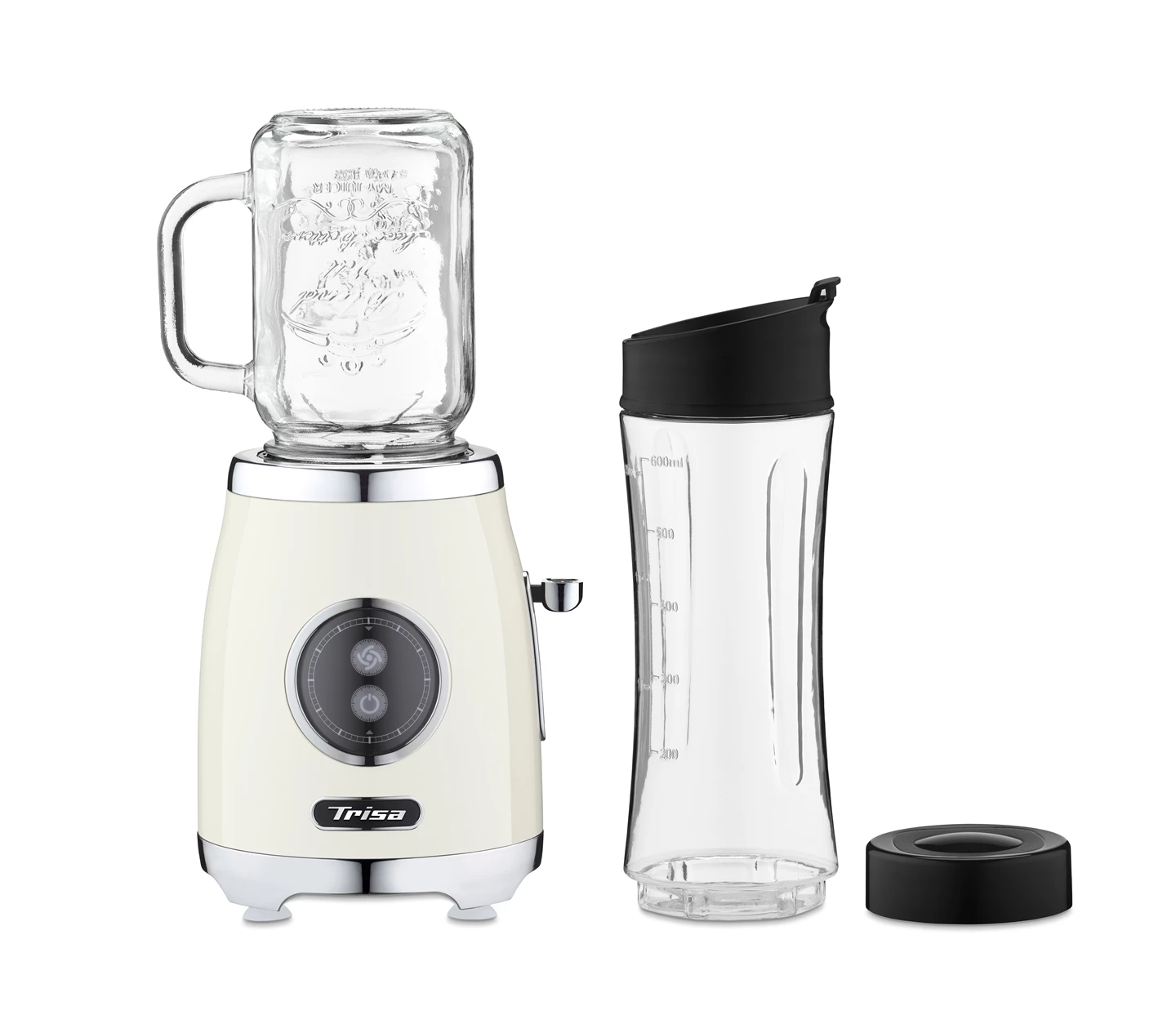 Kompakter Standmixer im Retro-Design – perfekt für kleine Küchen mit wenig Platz.