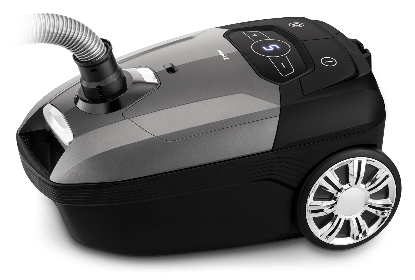 Kraftvoller Staubsauger mit 13 m Aktionsradius, komfortabler Universal-Bodendüse und Touch-Display.