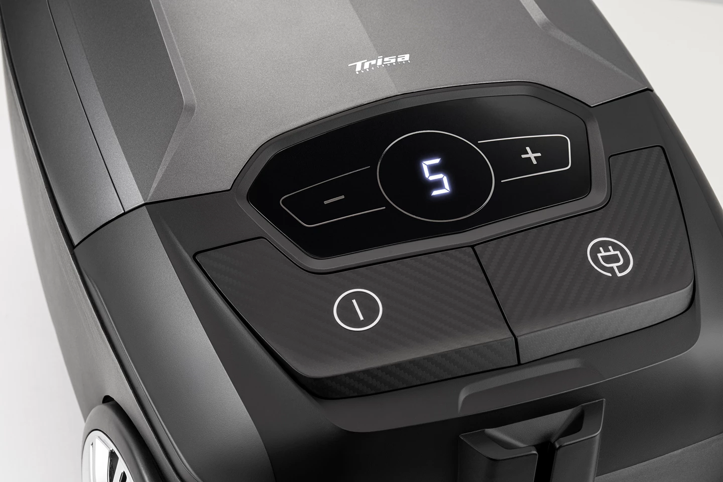 - Stufenlose Saugkraftregulierung und Staubbeutelwechselanzeige
