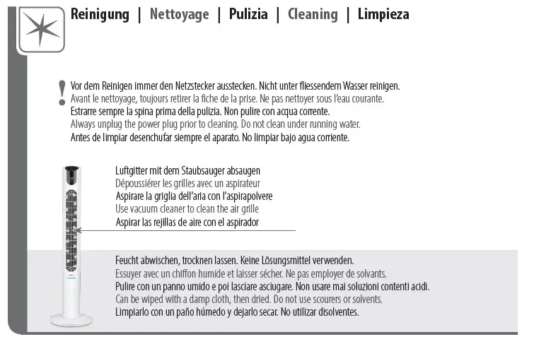 - Starke Luftverteilung dank oszillierendem Turm (70°)