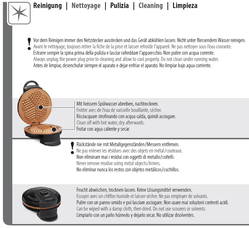 Geniessen Sie goldbraun gebackene Waffeln zum Frühstück oder zum Dessert. Die einzigartige Farbe der Platten macht das Waffeleisen im coolen Retro Design zu einem echten Hingucker in Ihrer Küche. Die Waffel kann leicht in fünf Stückchen geteilt oder als Ganzes genossen werden. Durch die stufenlose Temperaturregelung lässt sich für jedes Rezept der perfekte Bräunungsgrad einstellen. Die antihaftbeschichteten Heizplatten sind schnell backbereit und sorgen für eine gleichmässige Temperaturverteilung. Die Bereitschaftsanzeige signalisiert, wann das Gerät betriebsbereit ist. Die Waffeln sind besonders schnell zubereitet und ideal für unerwarteten Besuch. Teilen Sie die Waffeln in Stückchen und reichen Sie diese als Dessert zum Kaffee. Neben dem klassischen Rezept finden Sie in der Bedienungsanleitung ein Rezept für Schokoladenwaffeln und für herzhafte Waffeln.