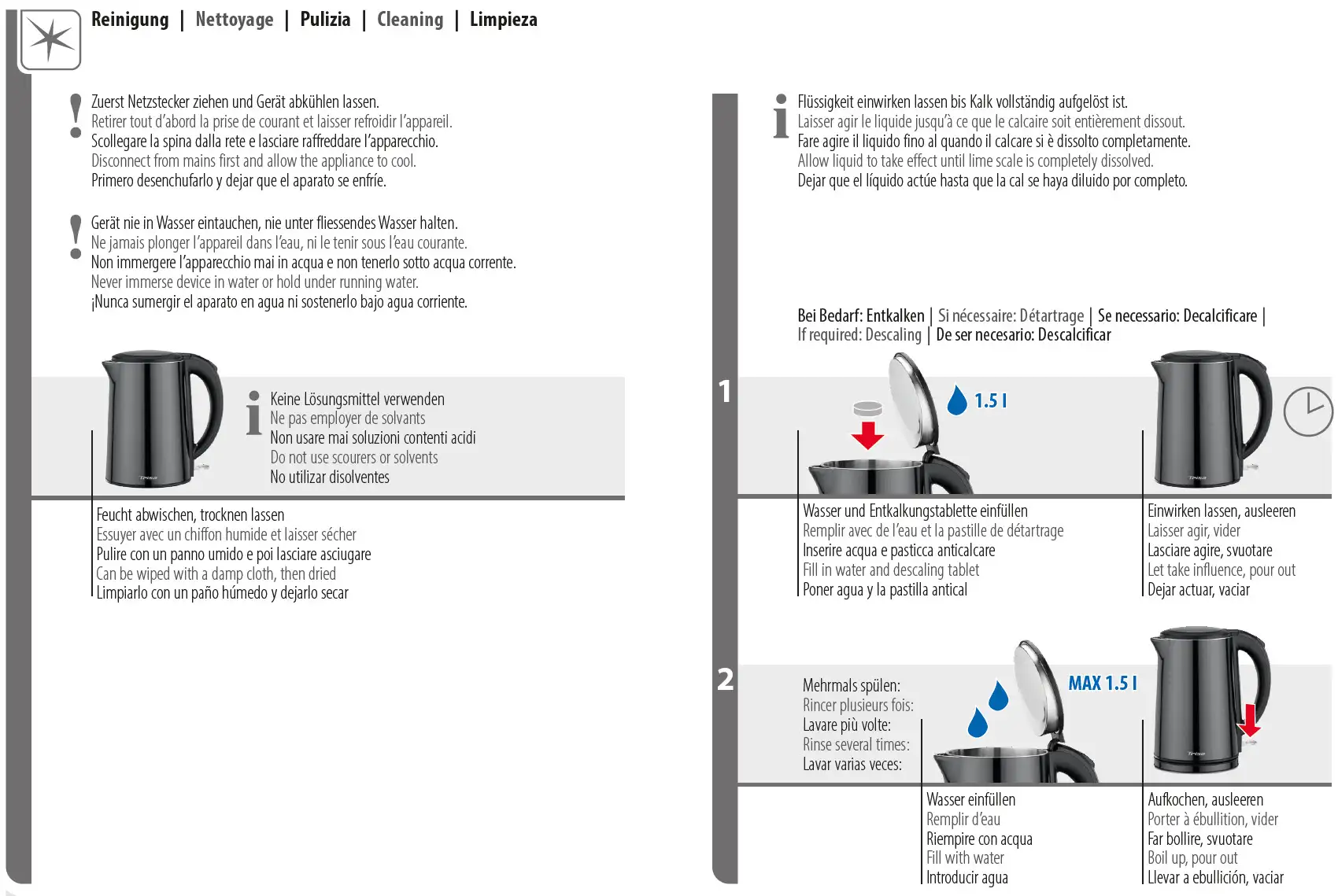 - Überhitzungs- und Trockenlaufschutz, einfach zu reinigen