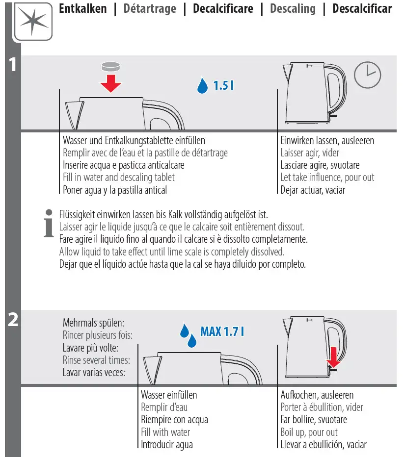 - Hochwertiger Edelstahl-Wasserkocher mit 1.7 Liter Fassungsvermögen