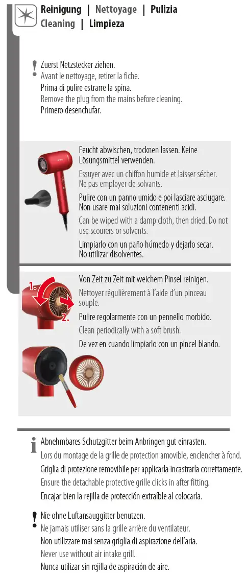 - Magnetic accessories: quick-drying nozzle, styling nozzle and diffuser nozzle