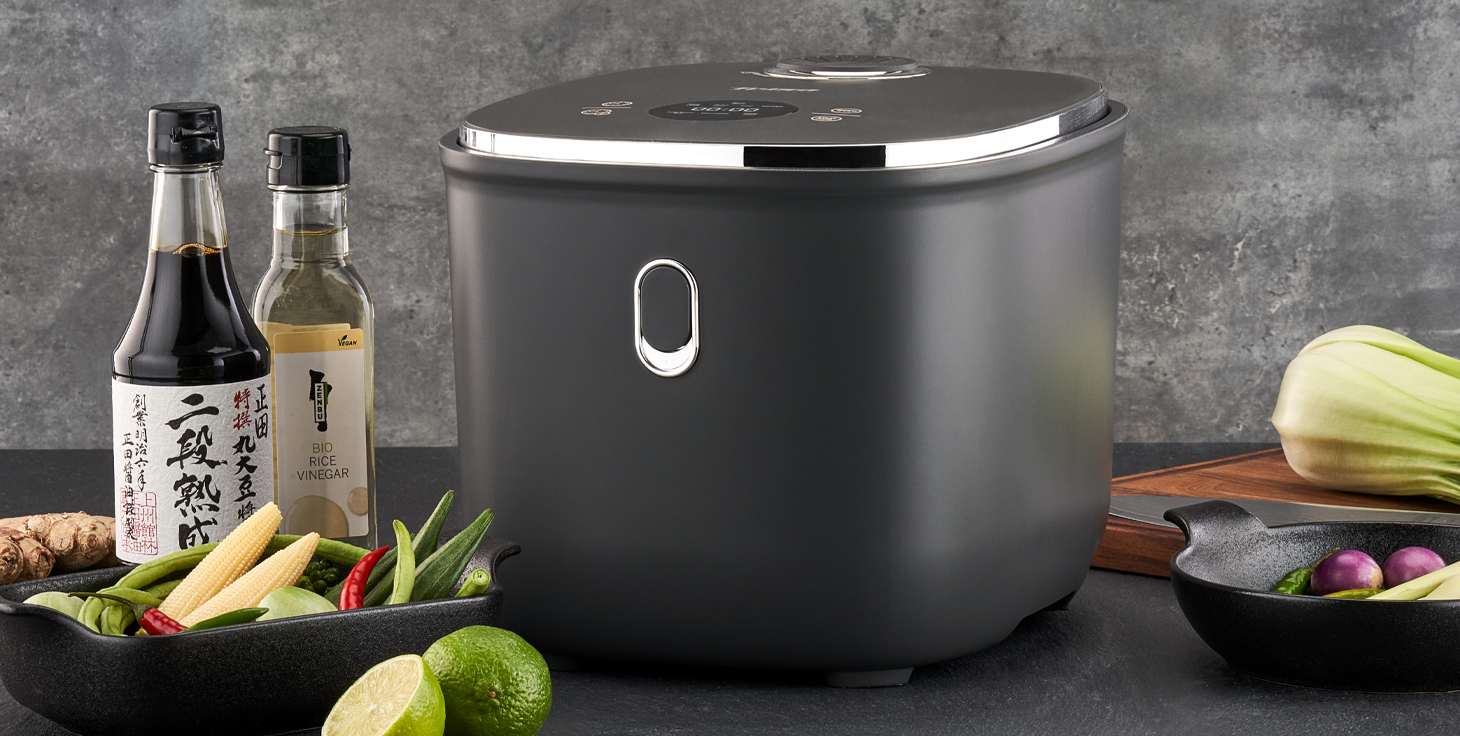 Versatile rice stove with steaming basket for low-carb rice and more – perfect for rice, porridge, soup and vegetables.