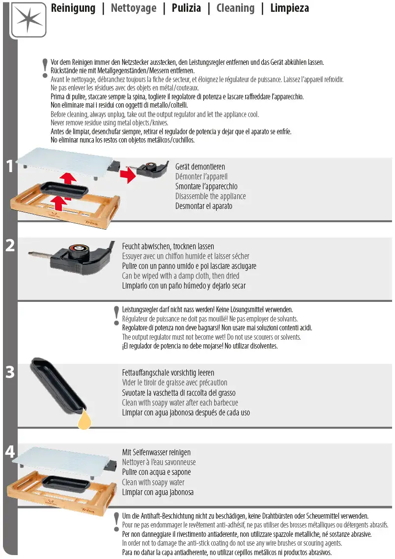 - Removable grill plate with ceramic and non-stick coating for easy cleaning
