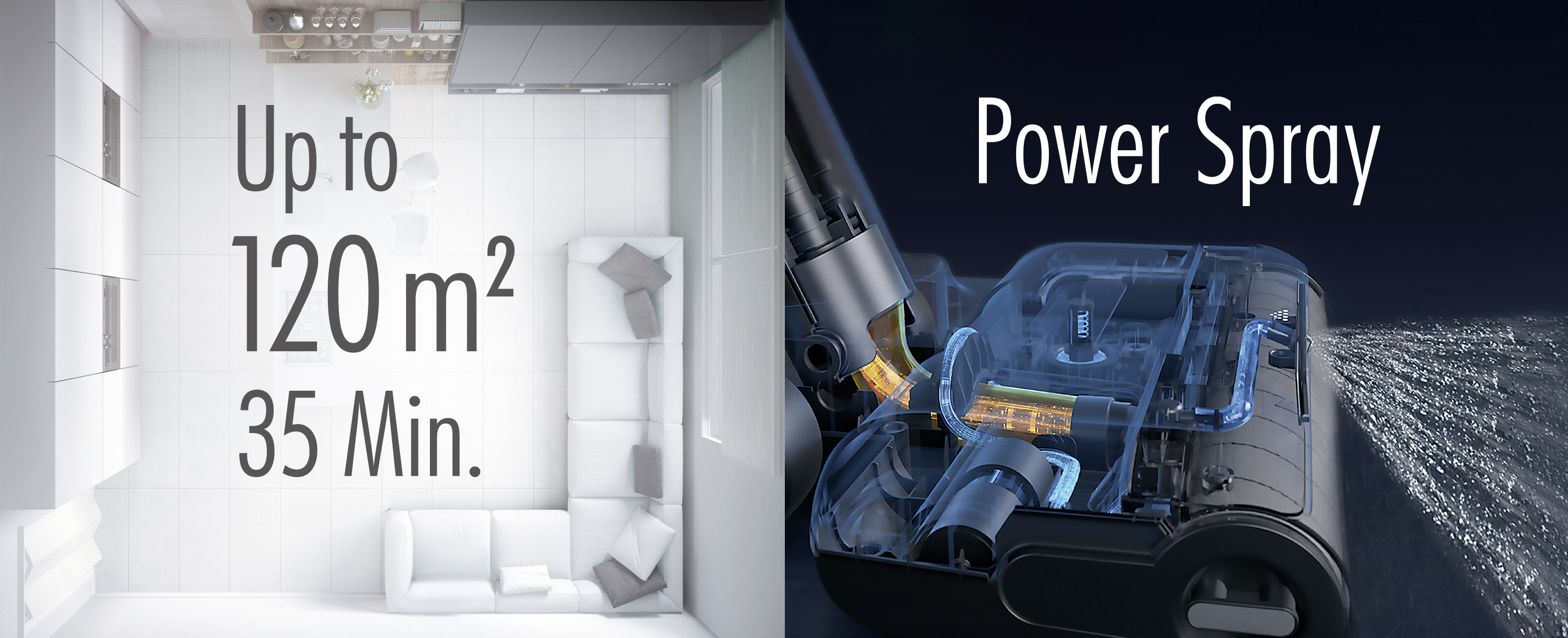 Hygienic cleanliness is guaranteed by the clever dual-tank technology with HEPA filter. You can individually adjust 800 ml of fresh water to the condition and dirtiness of the floor. The waste water tank holds 700 ml. Thanks to the generous tanks, a wide area can be cleaned before they need to be refilled or emptied again.
