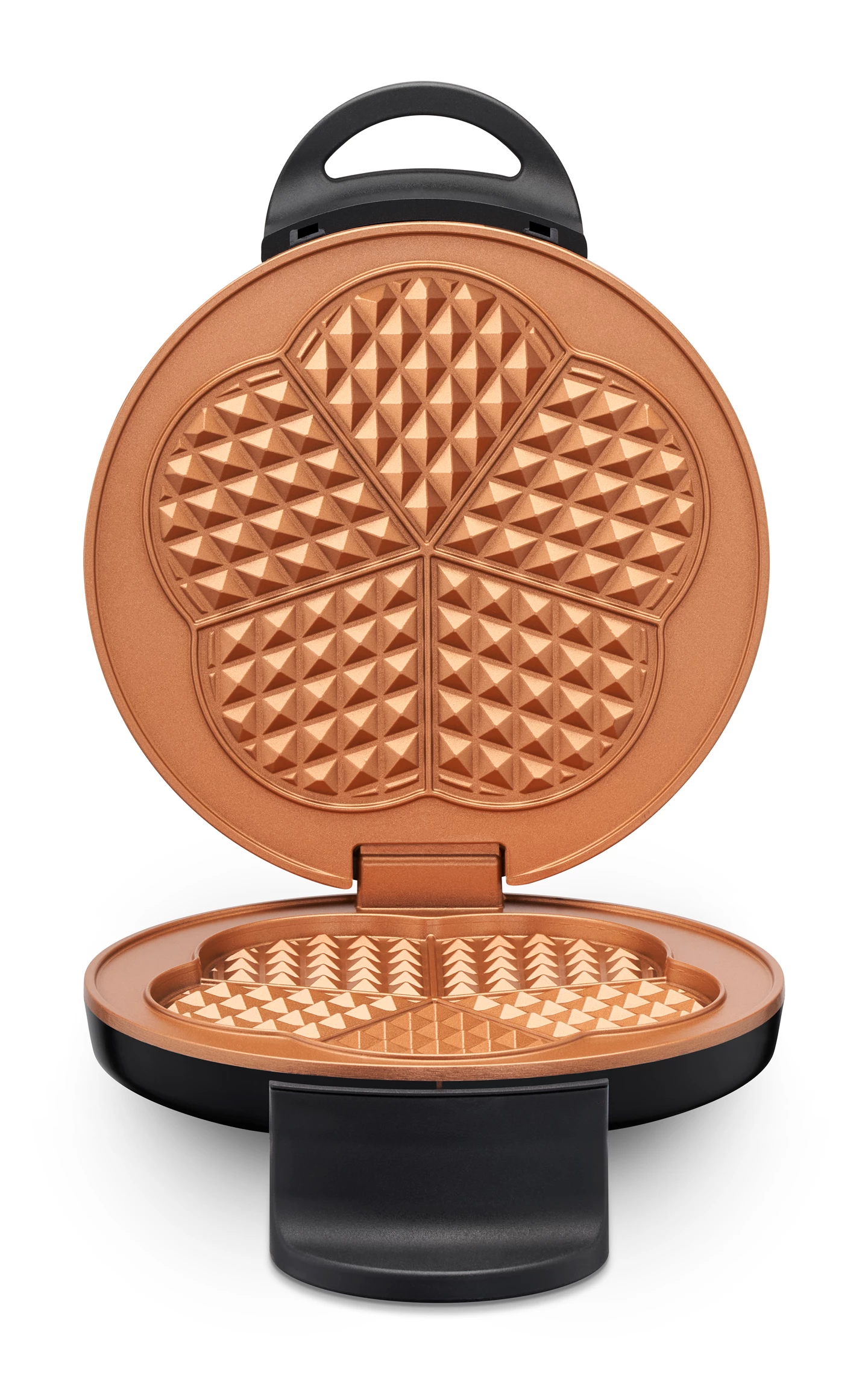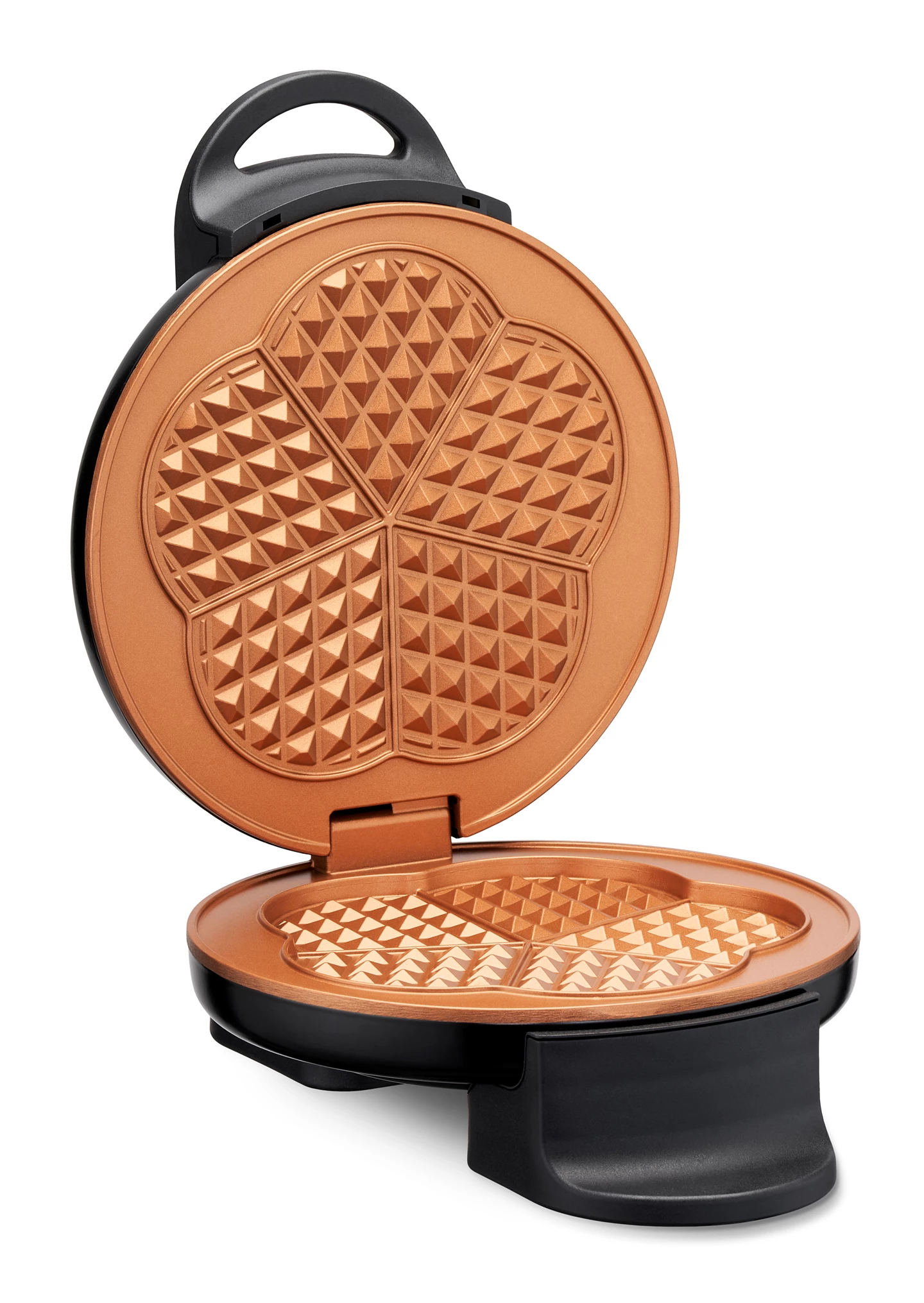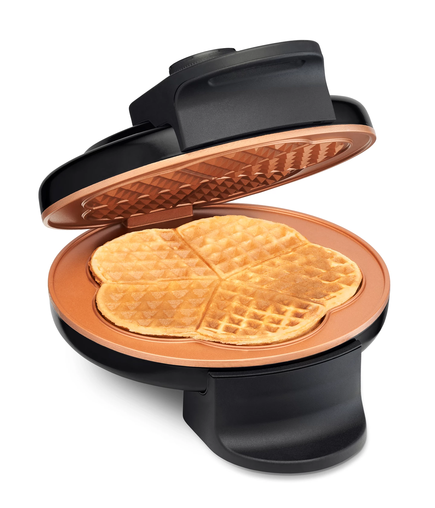 Five golden-brown baked waffles at once. Cool retro design - fits in any kitchen.