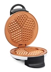 Five golden-brown baked waffles at once. Cool retro design - fits in any kitchen.