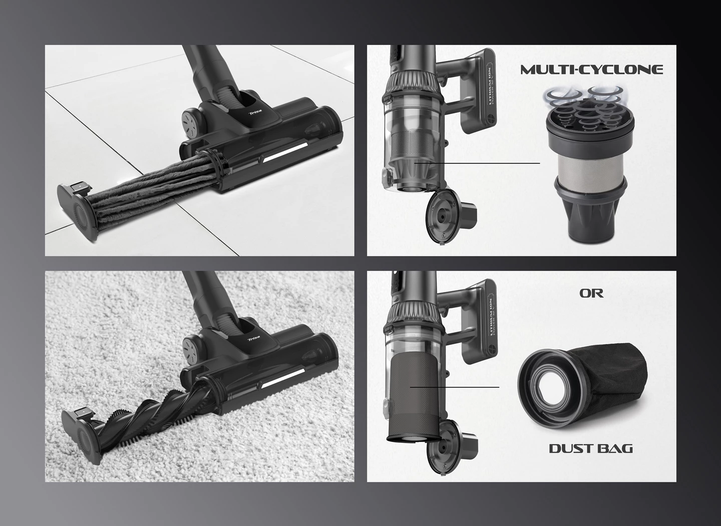 - Multicyclonique HEPA ou en option : sac à poussière pour un nettoyage confortable