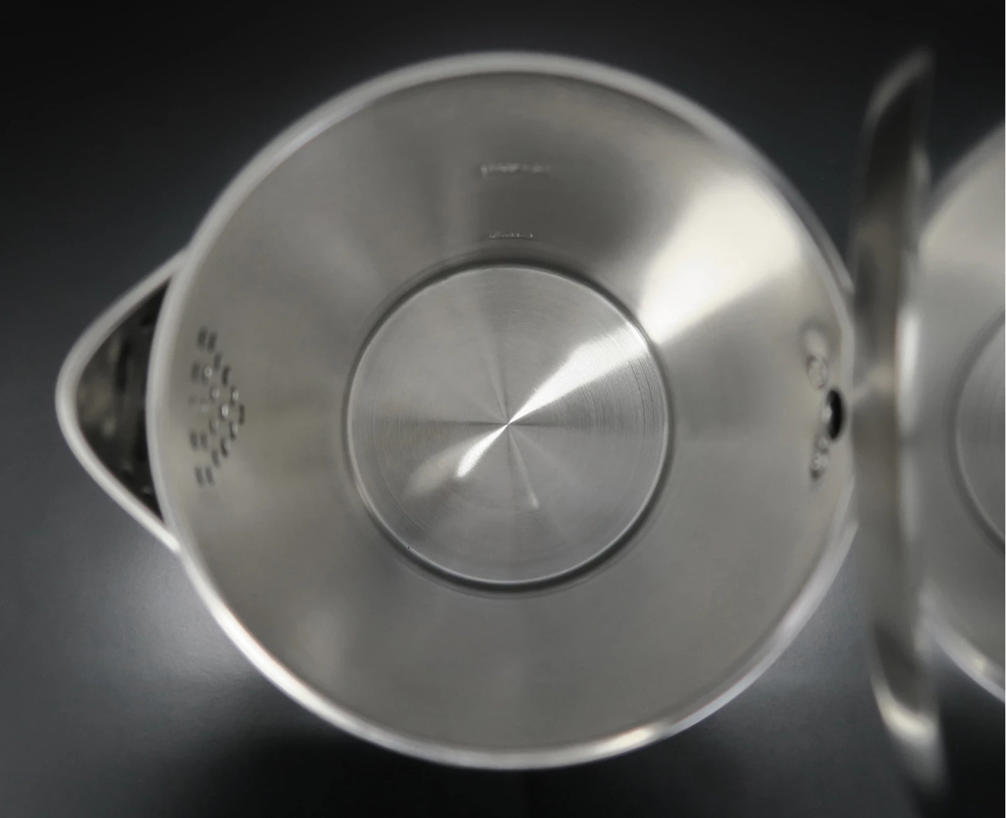 Bouilloire à double paroi pour une manipulation sûre et une ébullition rapide et économe en énergie.