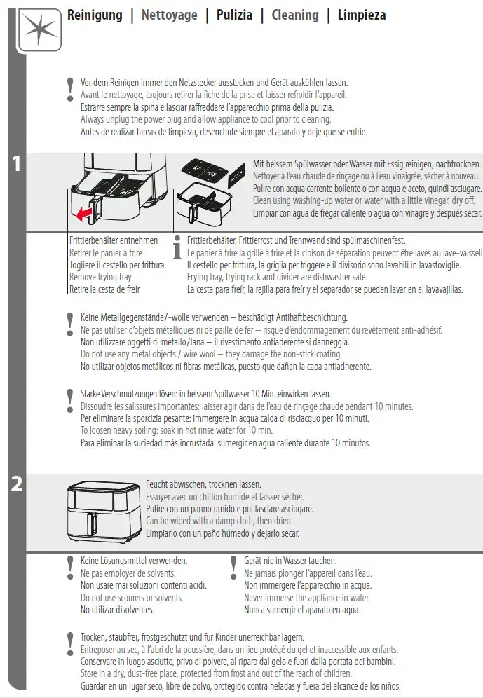 Découvre une toute nouvelle expérience culinaire avec la "Crunchy Fry Pro" de Trisa Electronics. La friteuse à air chaud apporte de l‘innovation dans la cuisine et permet de préparer des plats comme un chef professionnel. Grâce à la fonction SYNC FINISH et au panier de friture séparable, il est possible de préparer deux plats en même temps sans faire de compromis sur la croustillance. Des repas parfaitement coordonnés n‘ont jamais été aussi simples. La fonction DUAL COOK permet d‘utiliser tout le récipient pour une grande quantité en enlevant la paroi de séparation. Avec la "Crunchy Fry Pro", tu es prêt à relever tous les défis culinaires. Frire, griller, rôtir, cuire, réchauffer - avec notre friteuse à air chaud, tu maîtrises une large palette de techniques culinaires. Découvre la diversité culinaire qu‘offre la "Crunchy Fry Pro". Avec une capacité de 10 litres, tu peux facilement préparer différents types d‘aliments à frire en même temps. Des snacks aux repas complets, les possibilités sont infinies. Un contrôle précis de la température de 50 à 200 degrés Celsius et une minuterie de 60 minutes te donnent le contrôle total de ta cuisine. La "Crunchy Fry Pro" est bien sûr facile à nettoyer. Les accessoires passent au lave-vaisselle, ce qui te permet de passer plus de temps à savourer et moins de temps à nettoyer. Découvre l‘avenir de la friture avec la "Crunchy Fry Pro".