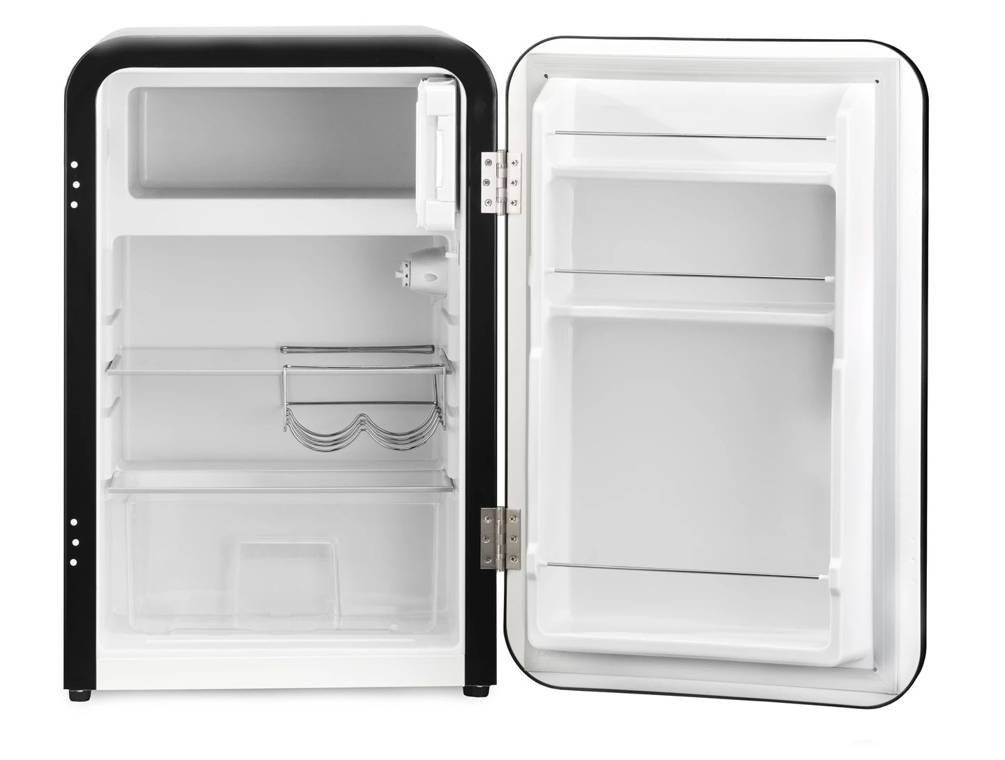 Réfrigérateur compact de 92 litres avec une capacité de congélation de 15 litres, au design rétro.