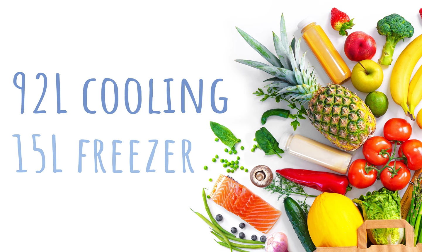 - Ampio vano frigorifero da 92 L (0 °C - +10 °C) e vano congelatore da 15 L (fino a -18 °C)