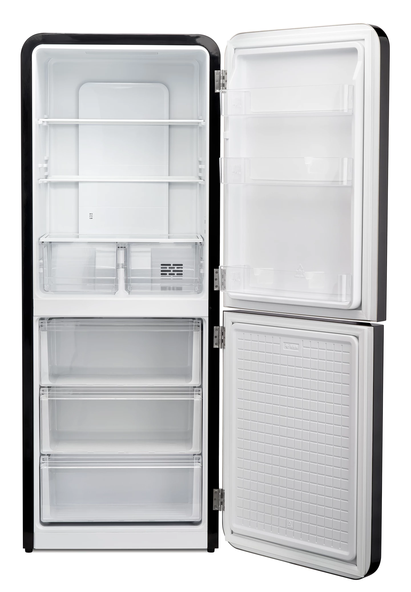- Con 3 ripiani porta, ripiani interni, 2 cassetti per verdure e 3 cassetti congelatore