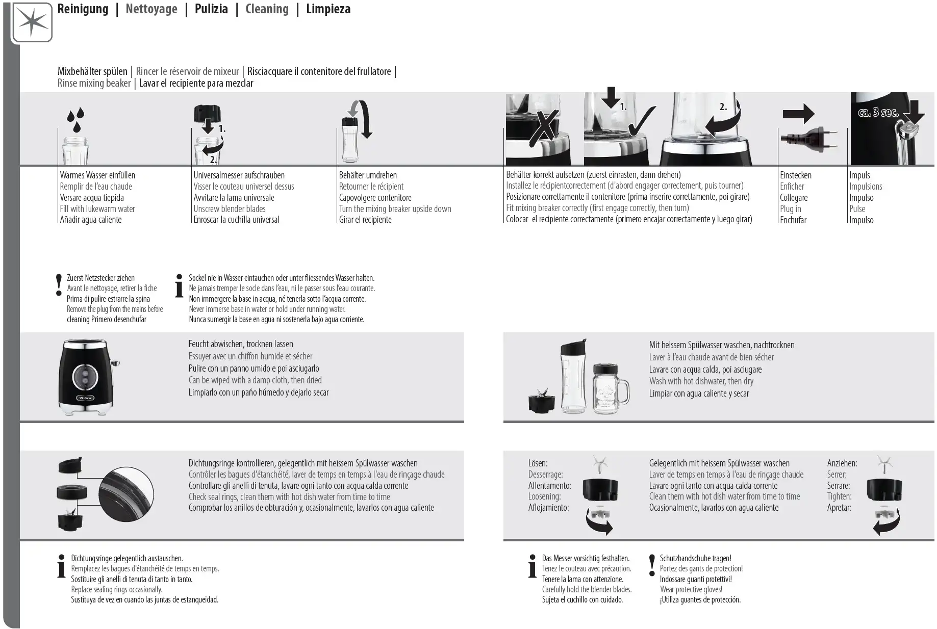 - Barattolo con manico, bottiglia e coperchi sono lavabili in lavastoviglie